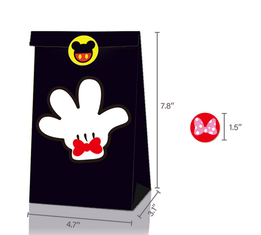 SET of 12 Mickey Mouse Paper Bag with Sticker